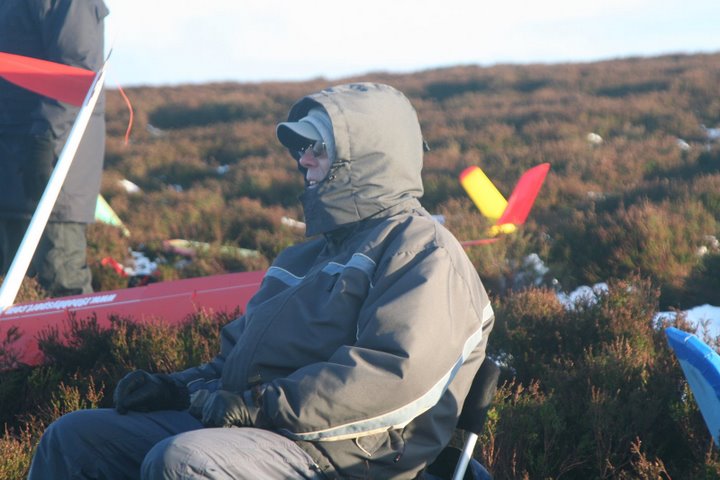I was feeling like a small boy who had just stood in water too deep for his wellies, and with the prospect of standing for 5hours or more with wet feet, was not very appealing. Visions of a nice warm fire and a cup of rosylee nearly won the day. Flying was not the first thing on my mind, but hopefully the other pilots were not going to be so easily distracted. First man up was Ronnie Lampe, setting an early the pace with 60.35, but eventually Ronnie succumbed to the cold and wet and called it a day at R4.