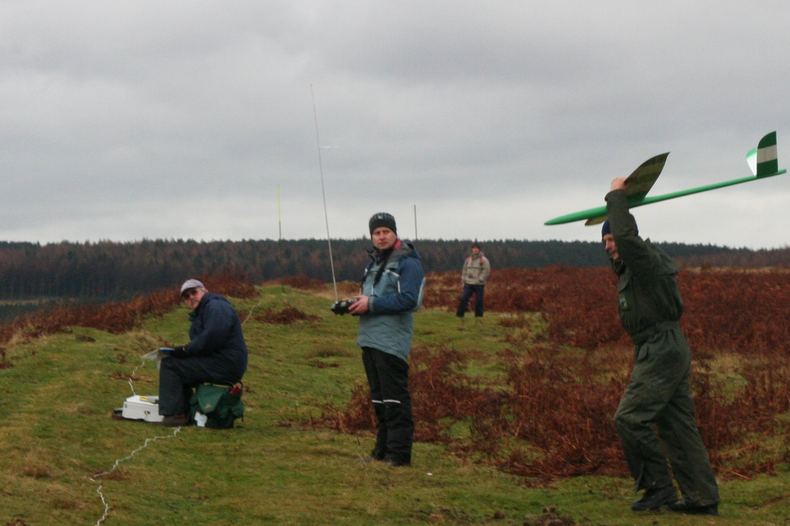 The first Winter League at Horcum nearly didn't make it. The rain and mist refusing to clear. By midday , with conditions still looking decidedly bleak, unrest broke out in the camp with several flyers about to call it a day. However a chink of brightness over towards the west convinced them to stay. We all headed off to take up positions at Levisham. As the deadline approached, the weather relented. The cloud lifted and a gently breeze greated now relieved group.