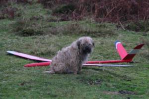 Racing finally started at 1:30 . Given the late start we would have been happy to have managed 3 rounds, but in the event, 5 were completed, leaving enough time to exit the moor before the sun finally set. A look at the results shows the dominance of the Skorpions, with the top 5 places taken. Paul Garnet flying Dave Wrights model after an unexpected prang with his, prior to the comp starting. Richard Bago still setting up his own Skorpion struggled to get the best out of his.